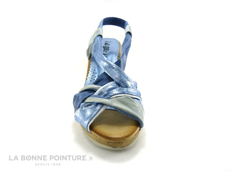 Un très bon rapport qualité / prix pour ces sandales compensées Femme Di Que Si en cuir bleu et métallisé, des chaussures élégantes et faciles à enfiler pour l’été !