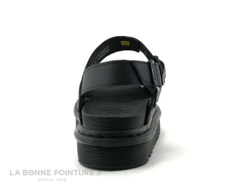 Les deux brides au milieu et à l’arrière permettent d’ajuster et de fermer la sandale noire Dr Martens Voss. Chacune se règle sur 5 positions.