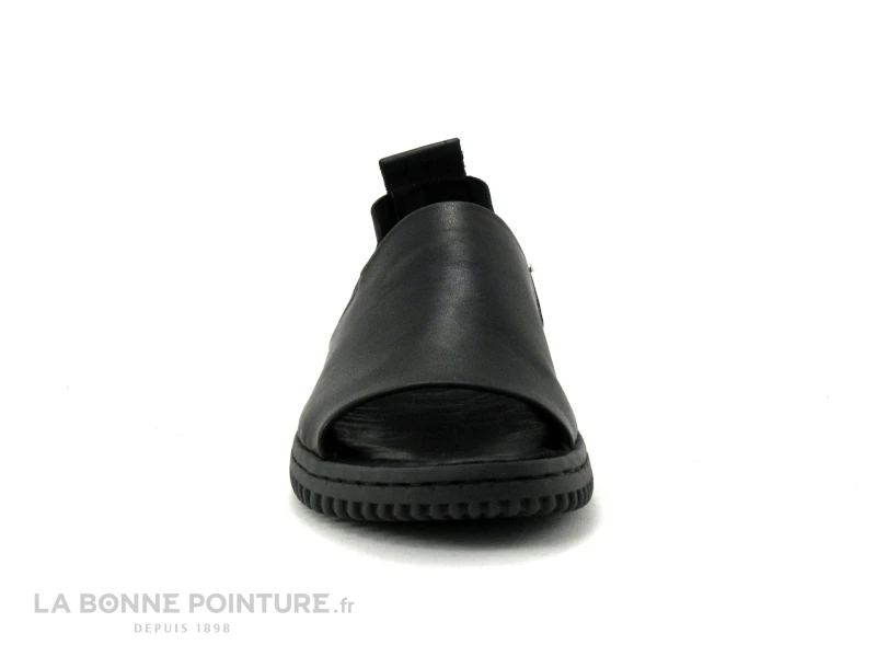 Ce nu-pieds souple Femme est composé d’un large bandeau en cuir lisse noir, associé à deux élastiques sur les côtés qui permettent d’enfiler la chaussure en un clin d’oeil.