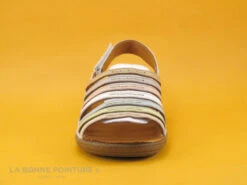 La semelle de marche des chaussures ouvertes Femme Karyoka Geni est légère façon liège, avec un talon compensé de 6 cm environ.
