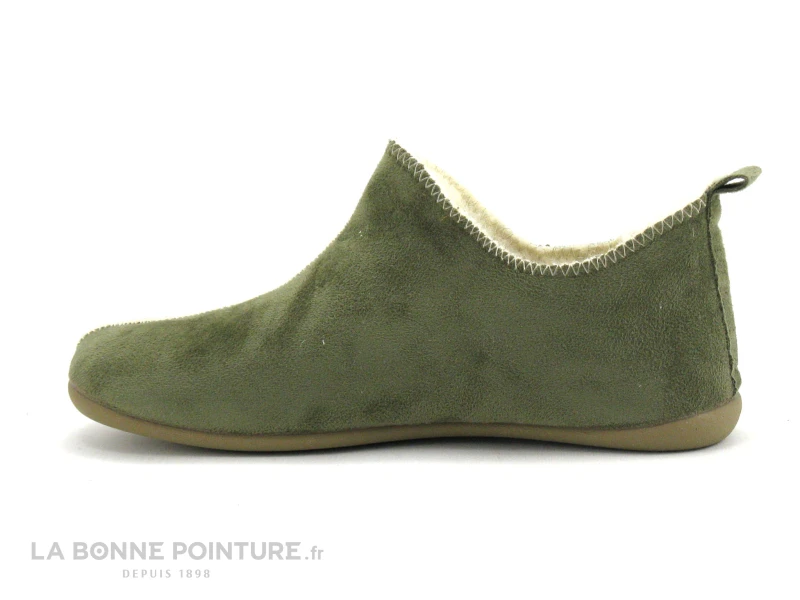 L’intérieur du chausson kaki Maison de l’Espadrille 6030 est en pure laine vierge, pour un environnement douillet et bien chaud.