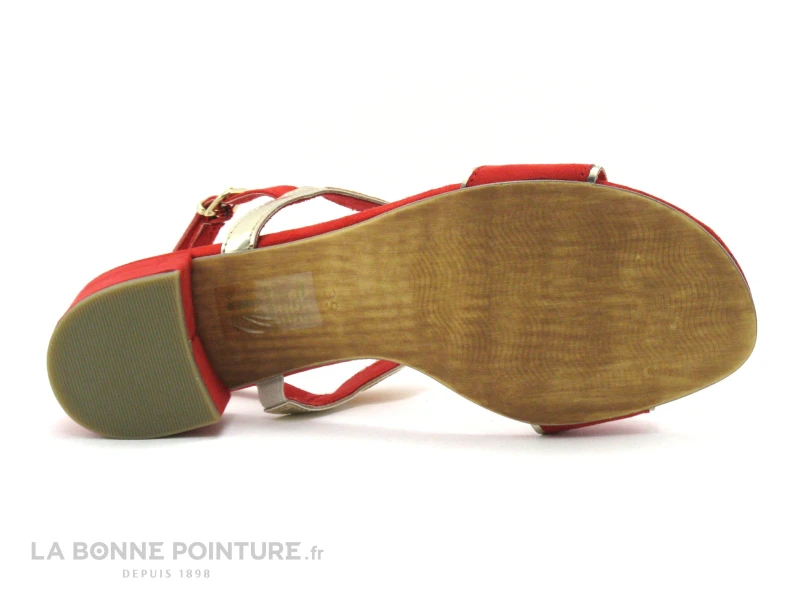 La fine bride à arrière de la chaussure Marco Tozzi permet de fermer le nu-pieds rouge, s’ajustant sur 5 positions.