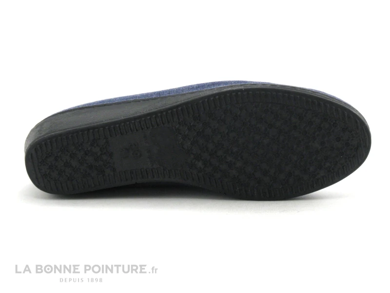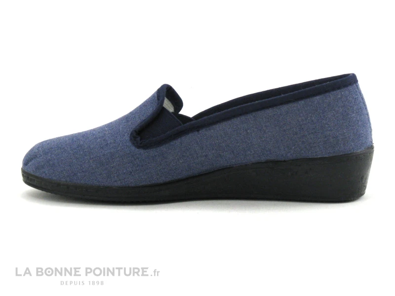 Les 2 élastiques bleu marine au niveau du coup de pied donnent de l’aisance dans cette pantoufle compensée Dame.