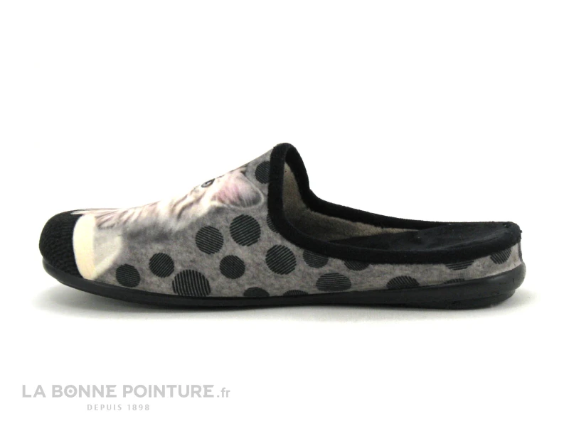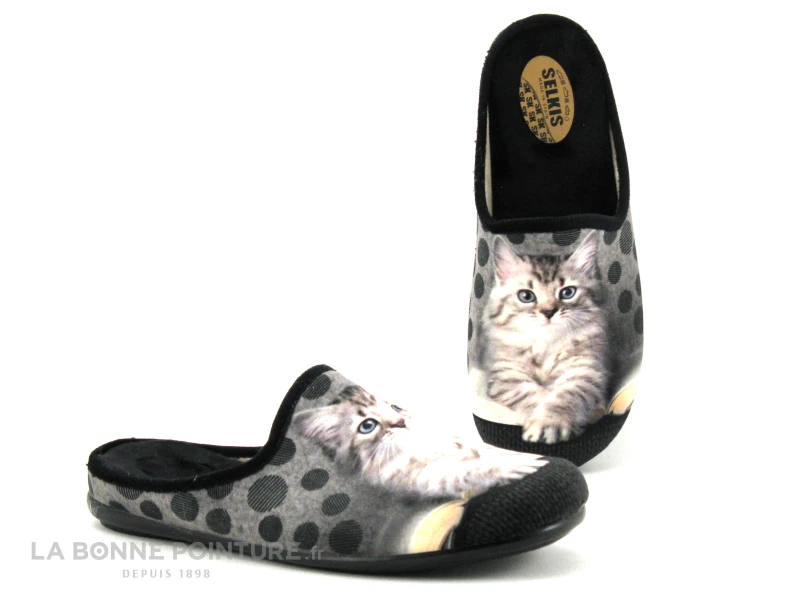 Selkis 22357 Gris – Chat – Pantoufle Mule Femme