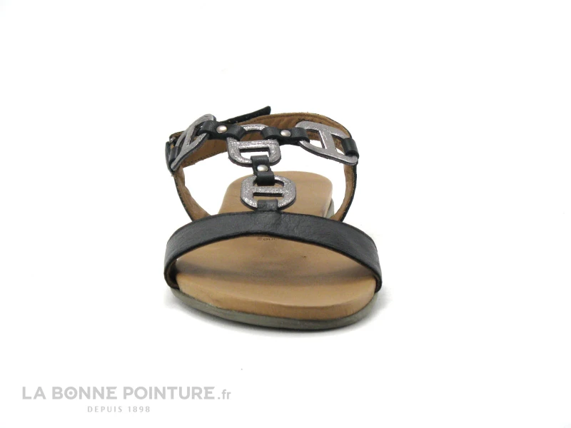 Cette sandale Femme combine un cuir noir et un cuir argenté (black/pewter) façon chainette.