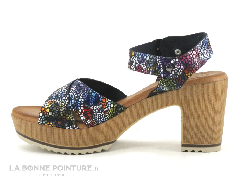 Les sandales plateforme en cuir bleu marine et multicolore Valeria’s 6234, des nu-pieds glamour et fantaisie pour l’été au meilleur rapport qualité / prix !